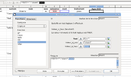 – appliquez la valeur si vrai : si le test est bien égal à vide, dans ce cas, l’individu n’est pas décédé, il est donc vivant, en toute logique ; dans ce cas, on ne veut pas son âge pour l’instant, on veut simplement savoir qu’il est vivant : entrez "vivant",