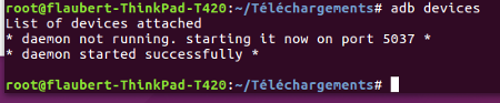 – lancer la commande #ADB dans votre Shell GNU/Linux !