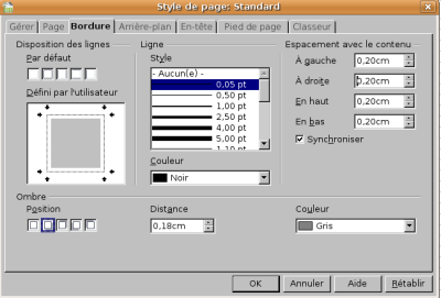- Choisissez, dans le menu, Format / Page / onglet Bordures,
