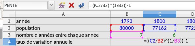 Il n’y a pas de fonction automatique pour calculer un taux de variation annuelle dans le tableur.
