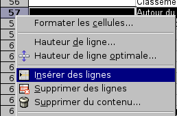 - Cliquez dans la cellule au-dessus de laquelle sera insérée une ligne,