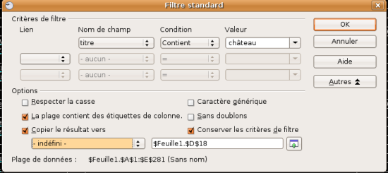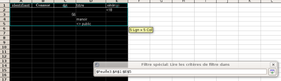 - Ensuite, sélectionnez, dans le menu, Données / Filtre / Filtre spécial...,