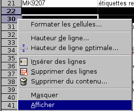 Les lignes sélectionnées et masquées ne sont alors plus visibles, mais restent dans la feuille.