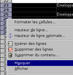 - Sélectionnez les lignes à masquer,