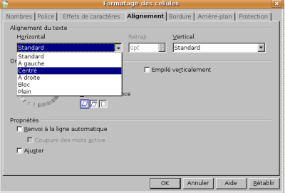 - choisissez, dans le menu, Format / Cellules / onglet Alignement / Alignement du texte - “Horizontal”.