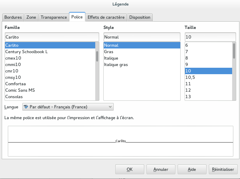– double-cliquer sur la légende