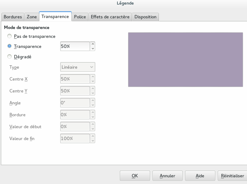 – afficher ou non la légende