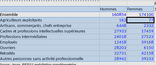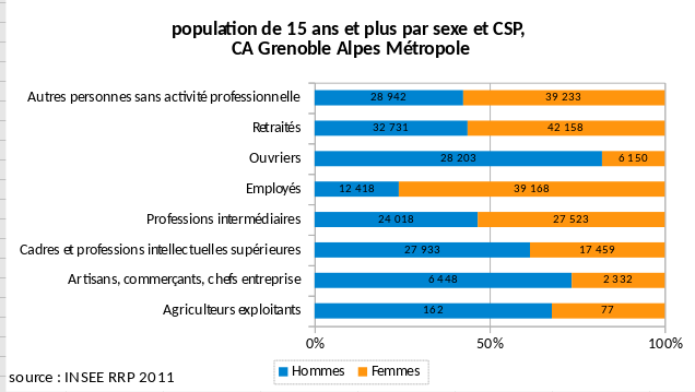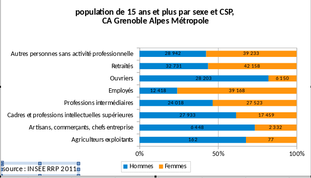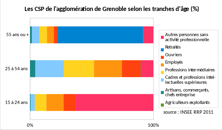 Nous choisissons pour l’exercice de représenter les CSP de l’agglomération de Grenoble que nous avons récupérées sur le site de l’INSEE.