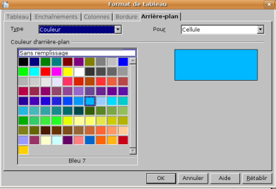 OU BIEN - passez par Tableau / Propriétés du tableau... / onglet Arrière-plan. Dans ce cas, il n’est pas nécessaire de sélectionner la cellule avant puisque vous pouvez la sélectionner à cet endroit.