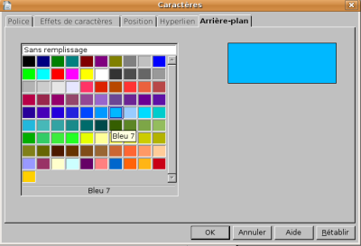 - choisissez votre couleur à partir de l’icône Trame de fond de la barre de tâches