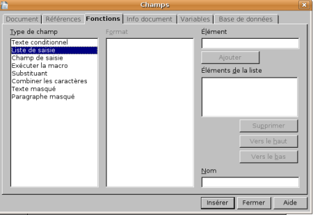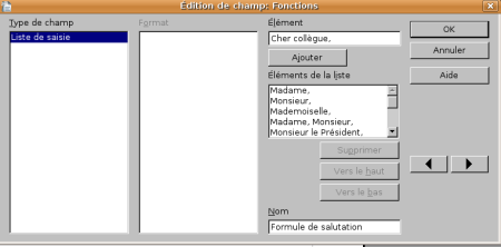 Le champ de liste permet de créer un champ du genre subsitutant. La différence est que le clic sur le champ affiche une liste de propositions parmi lesquelles vous pouvez faire votre choix.