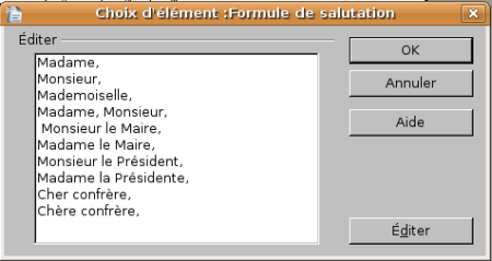 Le champ de liste est intéressant à utiliser, notamment dans les modèles de lettres, les modèles de fax et les AutoTextes (en fait, tout document qui s’appuie sur une structure fréquemment utilisée).