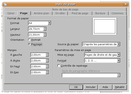 – dans l’onglet Page, cochez Paysage,