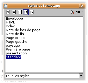 – Dans la fenêtre Styles et formatage, cliquez sur l’icône Styles de page, faites un clic droit sur le style Standard et choisissez Nouveau,