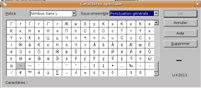 - sélectionnez le sous-ensemble Ponctuation générale dans Sous-ensemble,