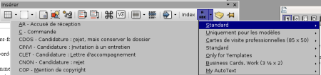 Un clic sur cette icône affiche la liste des AutoTextes et de leurs raccourcis : cela est très pratique en cas d’oubli ;-).